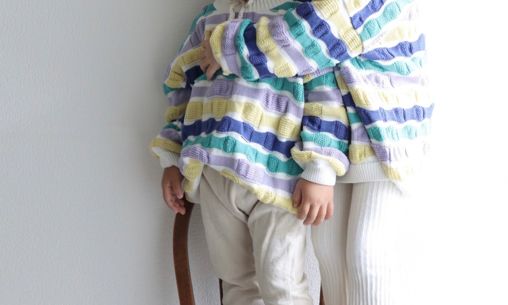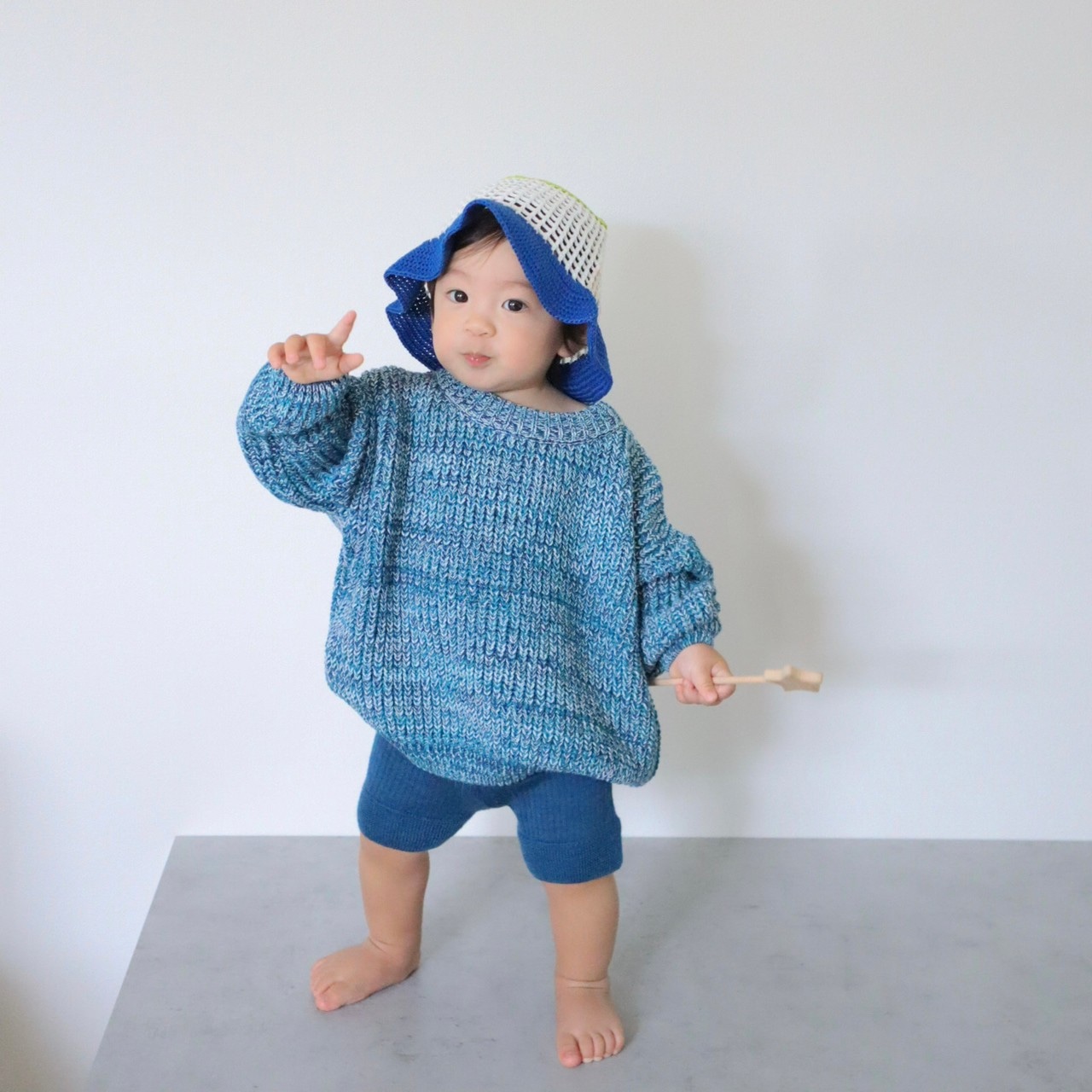 あやかちゃん & しきくん ( @tas.0616 ) - Openwork crochet bucket hat – multicolor , Bike shorts – marine blend , Melange sweater – marine blend