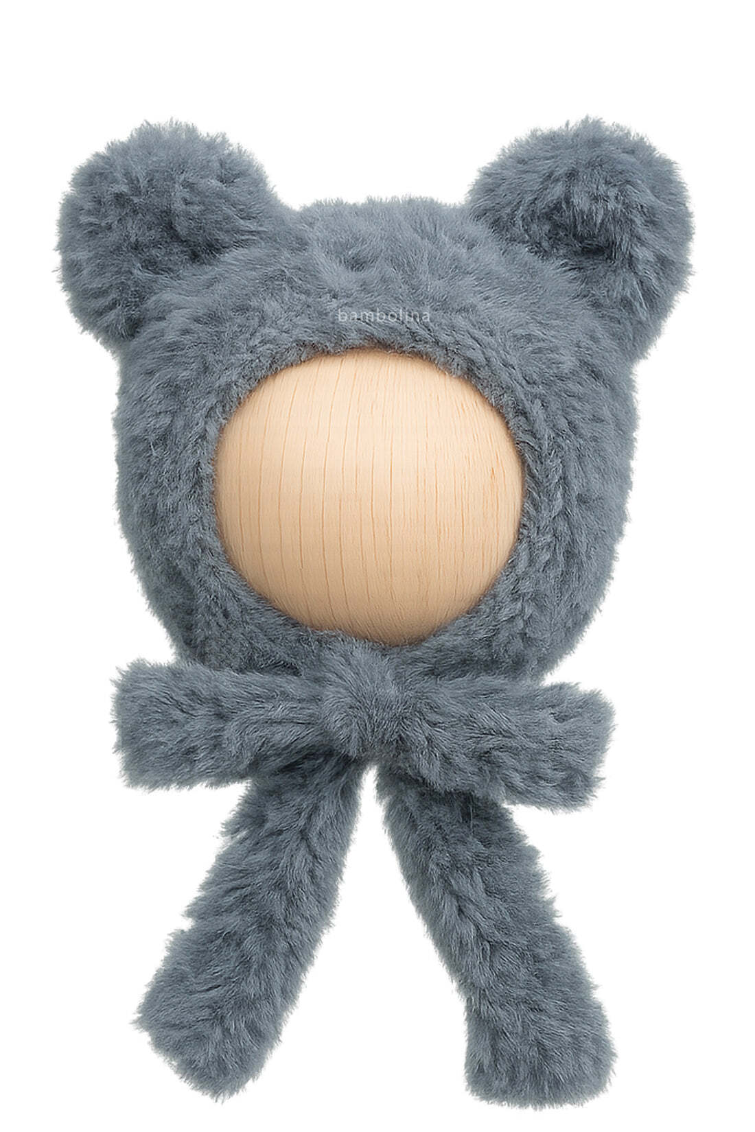 ふわふわのベア耳が愛らしい、手編みのテディベアボンネット。
