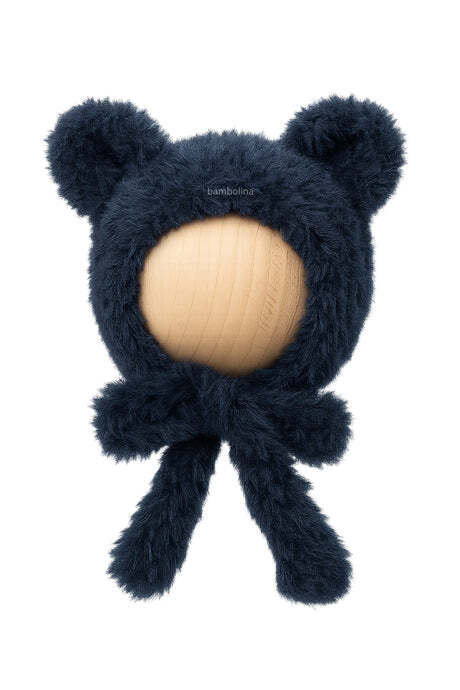 ふわふわのベア耳が愛らしい、手編みのテディベアボンネット。