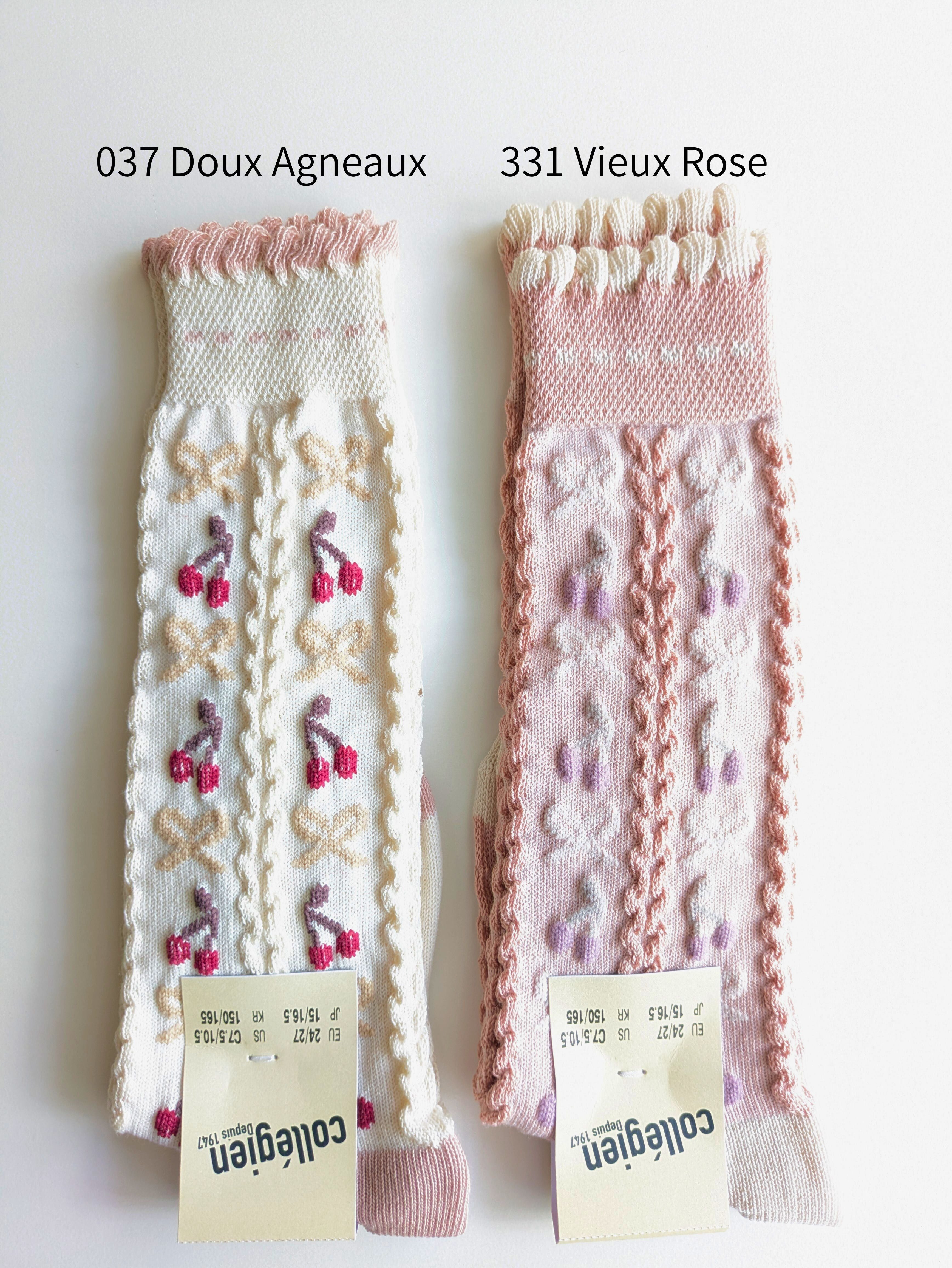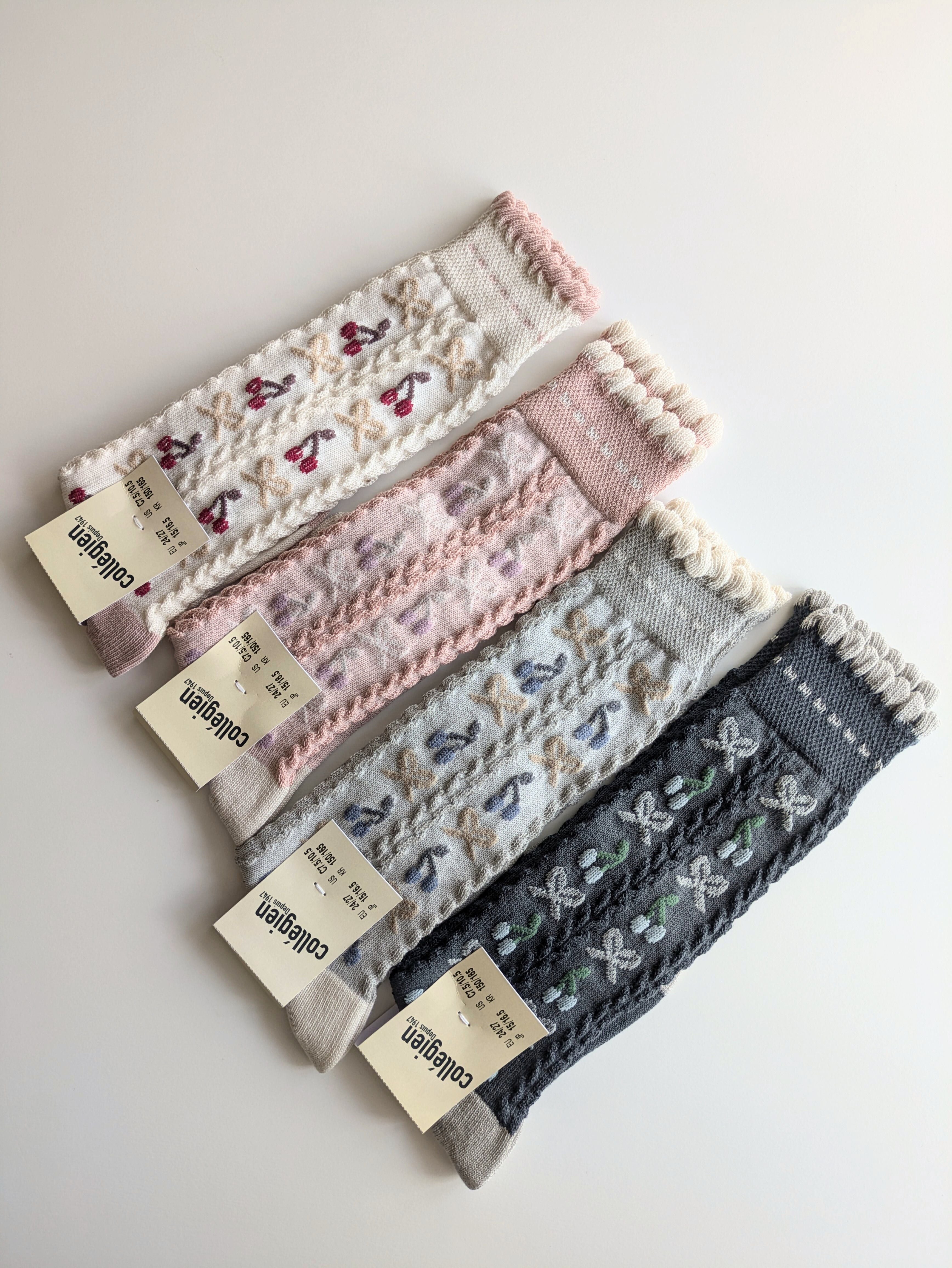 Collegien/Cerise - Jacquard Cherries and Bows Knee-high Socks