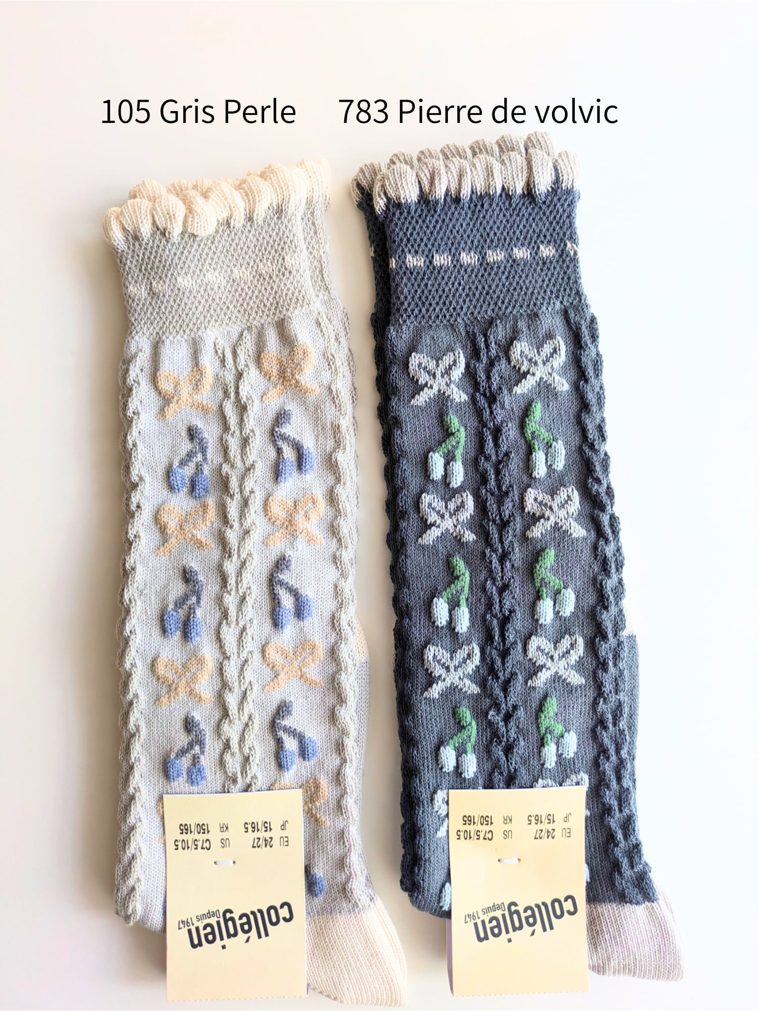 Cerise - Jacquard Cherries and Bows Knee-high Socks