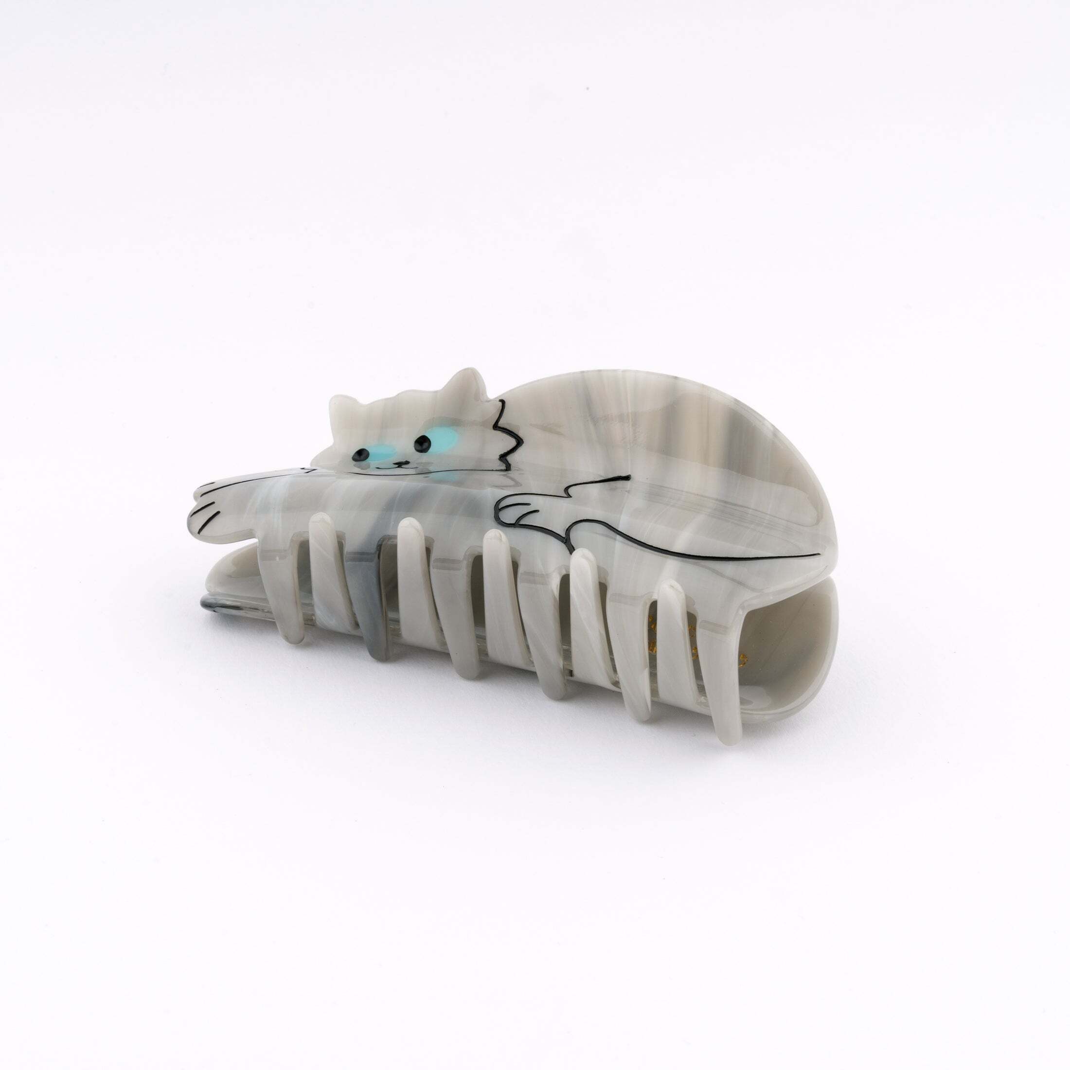 ふわっとくつろぐグレーキャットがそのままヘアアクセに♡