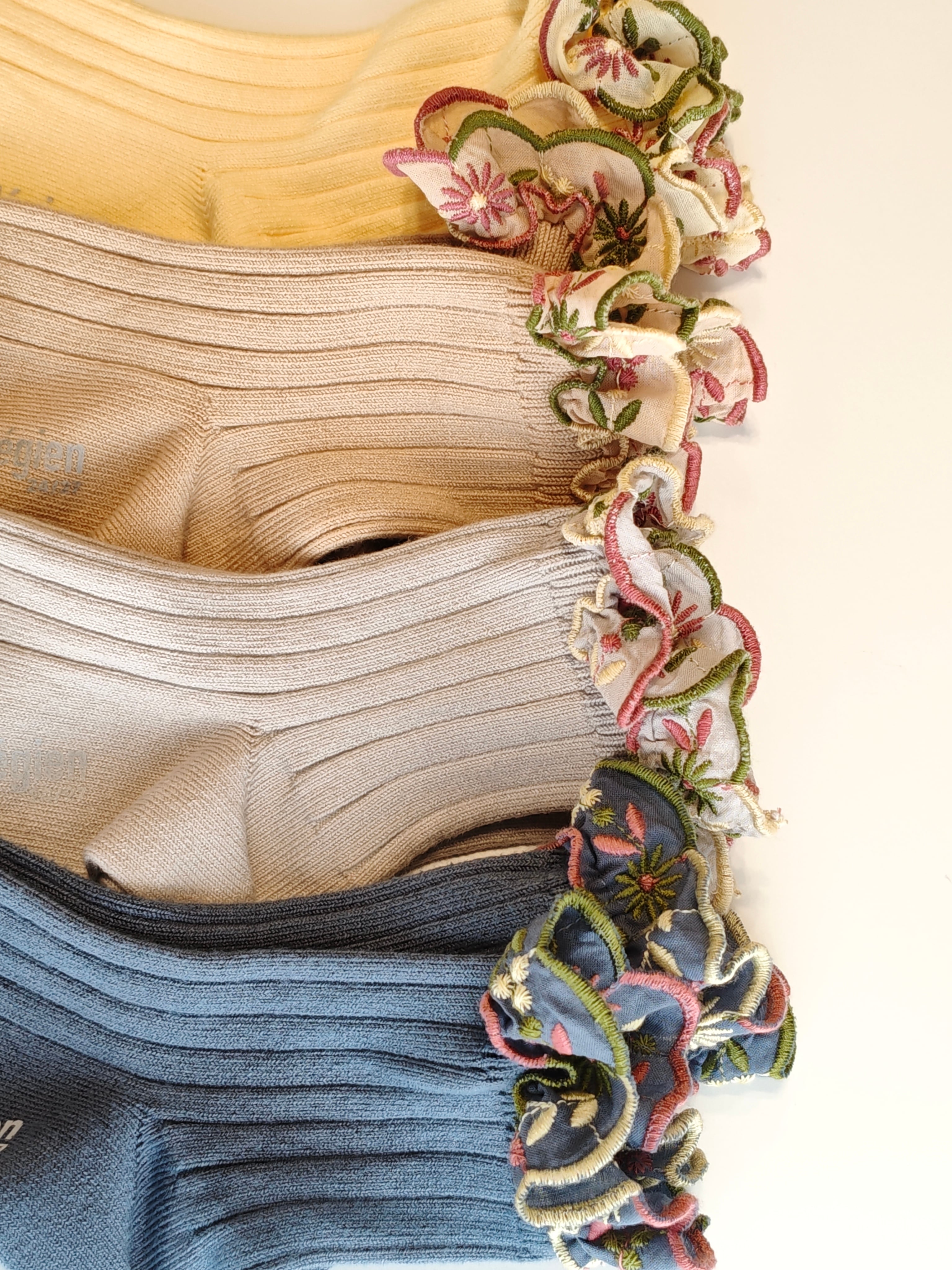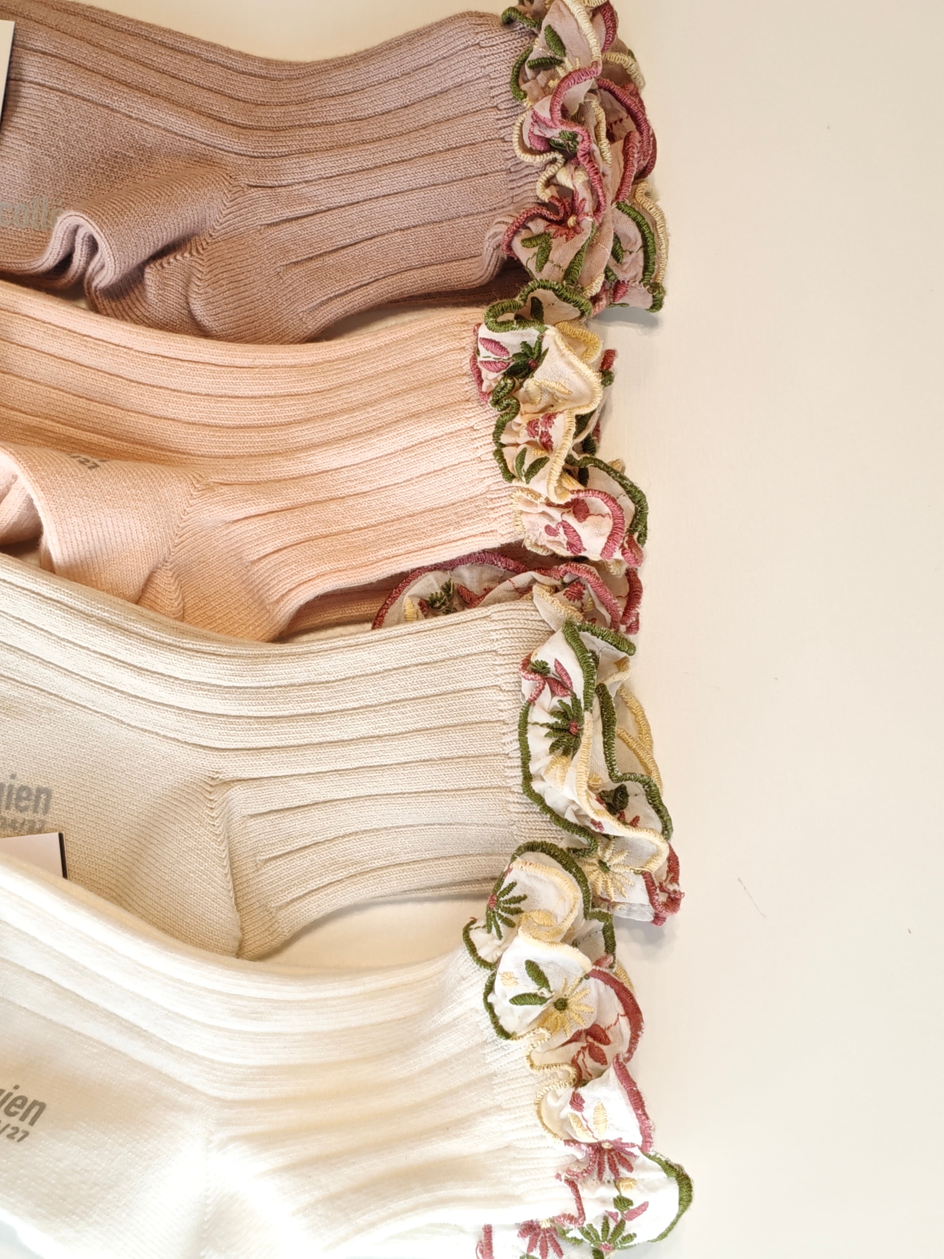 Anemone - Embroidered Ruffle Ribbed Ankle Socks