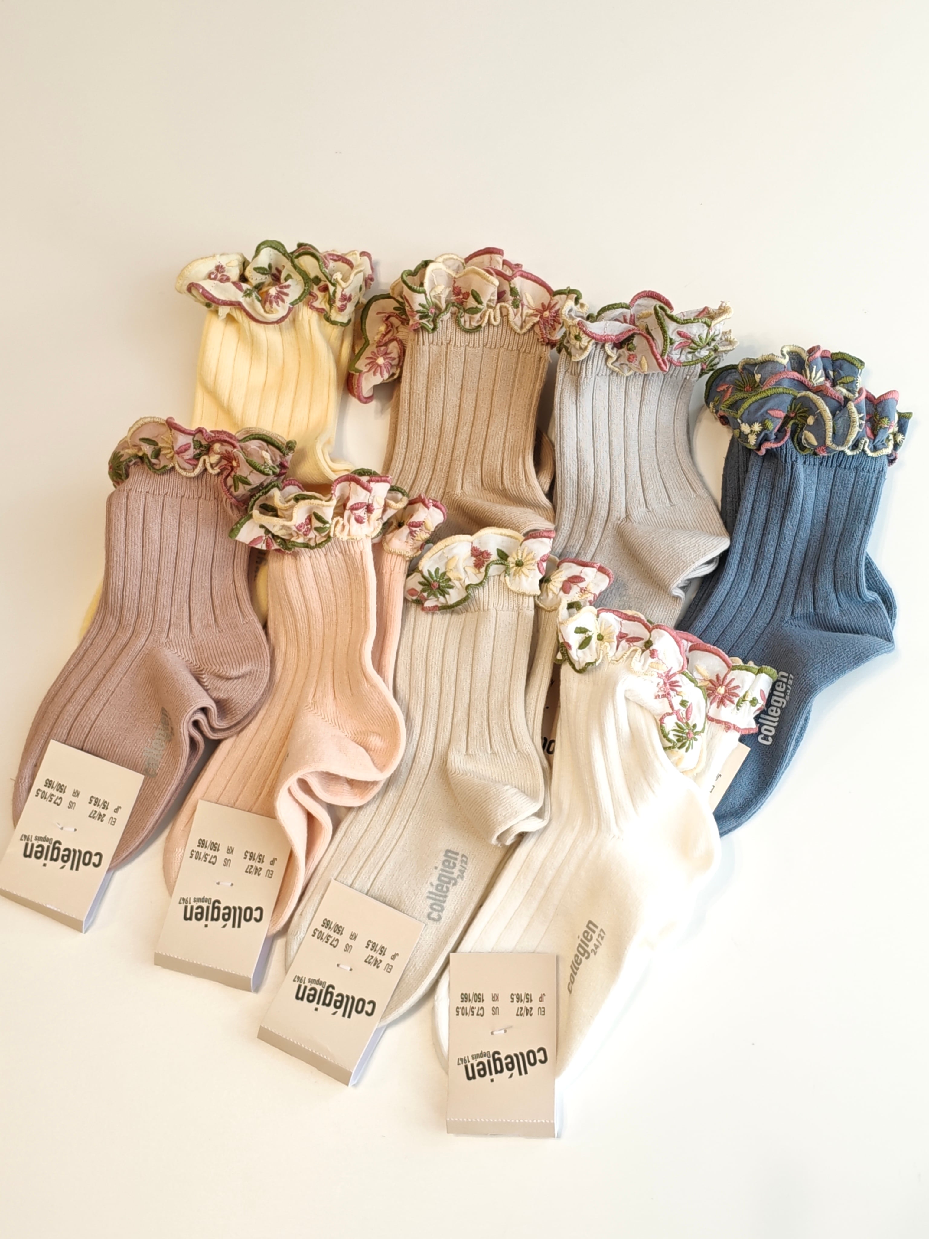 Collegien/Anemone - Embroidered Ruffle Ribbed Ankle Socks